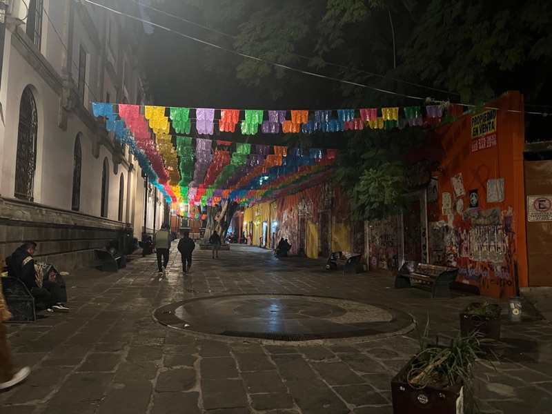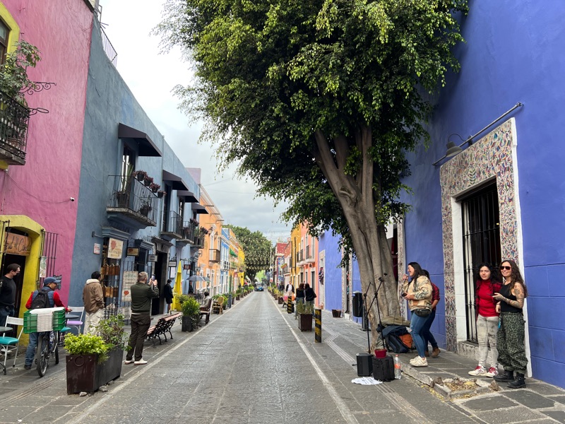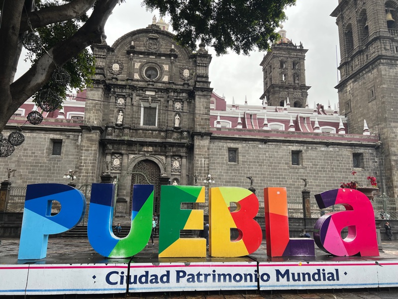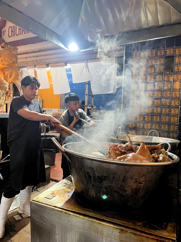 We have spent the last few days in the vibrant city of Puebla, a much smaller city 2 hours South of Mexico City. We’ve experienced a bit more of the ‘real’ Mexico here, visiting local markets and experiencing the culinary delights of Mexico albeit, cows hooves and pigs spines! Tristan was of course disgusted by it all, but did try some potato things that apparently tasted of fish 😳. Puebla is much quieter than Mexico City, but still HUGE with a population of 1.2million people. Puebla boasts beautiful colonial architecture and many artisan cafes, galleries etc, and generally the feeling of many European cities. It does still have a bit of ‘edge’ about it though, with armed policeman on every street corner and massive police trucks passing you by every few minutes. We stayed in a gorgeous hostel which was very vibrant and felt very safe, and one of the best I’ve ever stayed in. We have now learnt that dorm beds have curtains around each individual bed, a few years too late I reckon!!