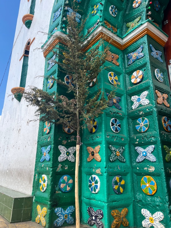 With a greater understanding of the area and how the Xapotec community had and continue to fight to retain their indigenous customs and practices we took a short ride from San Christibal to a small village in the hills to have a nosy at the rituals carried out by the Zapotecs within the Catholic Church. Not that this is a pilgrimage but we heard it was worth a look. We wander around the markets selling the usual handmade colourful wares, and no, I don’t want a pair or pants made of woven material or a fluffy skirt made of lambs wool (literally a black sheepskin rug). It’s 35 degrees!