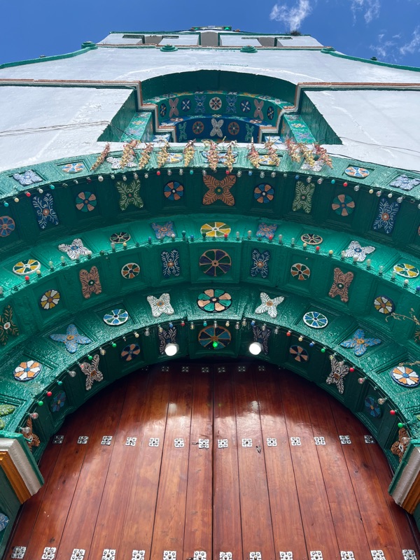 This church was not typical of any that we’d peeked into in any previous town or city. To give a brief description, instead of the typical sculpture and paintings were instead figurines of their Saints, at least 20 that lined the two sides of the church. All pews were removed and instead the floor covered in pine needles. In any remaining spaces tables or clearings on the floor were covered with thousands of candles, a mesmerising sight to walk into. We spent some time watching, trying unsuccessfully not to be too conspicuous, an ‘elder’ (about my age…) curing his daughter of some ailment, with repeated muttering of prayer and stroking a herbal bouquet over the girl. Quietly waiting next to the family was a chicken waiting to be returned to her pen…. no such luck for this chick! The ritual ended with the hen being offered to the chosen saint, then with a swift twist the limp hen was held up and a toast of the local pox (pronounced ’posh’) or bizarrely also Coca Cola was ceremonially drunk to end the ceremony.