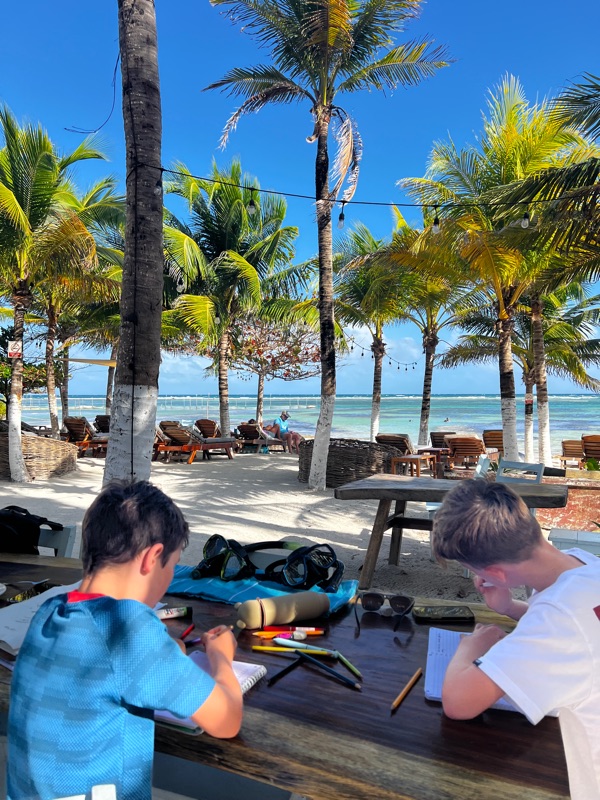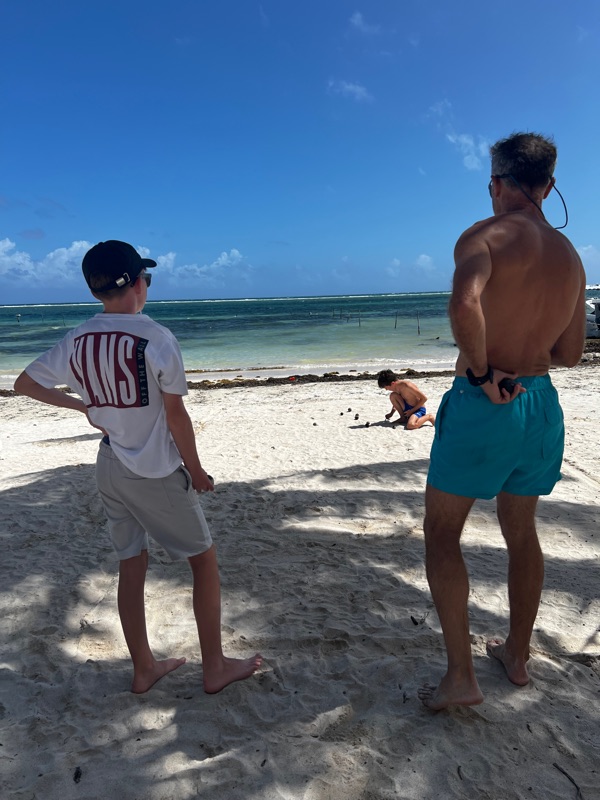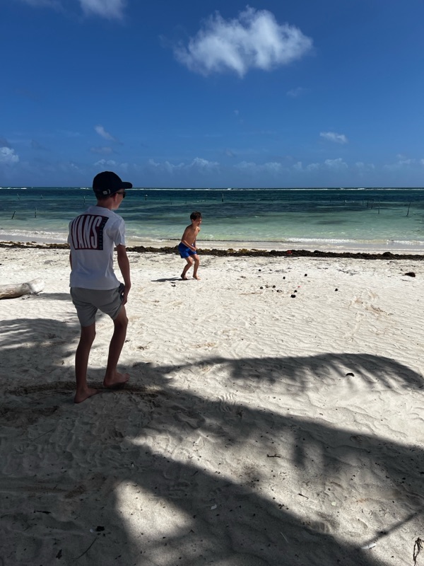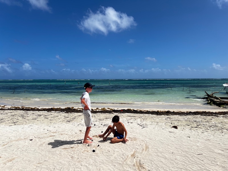 We soon understood that if you laboured the point that we weren’t American nor off the ships we were offered the Pesos (local) menus which were considerably cheaper than the Dollar versions. Even better, due to the high winds the next 2 days were empty so we had the pick of lush beach front bars practically to ourselves where we snorkelled and played boule with baby coconuts! This is the life….