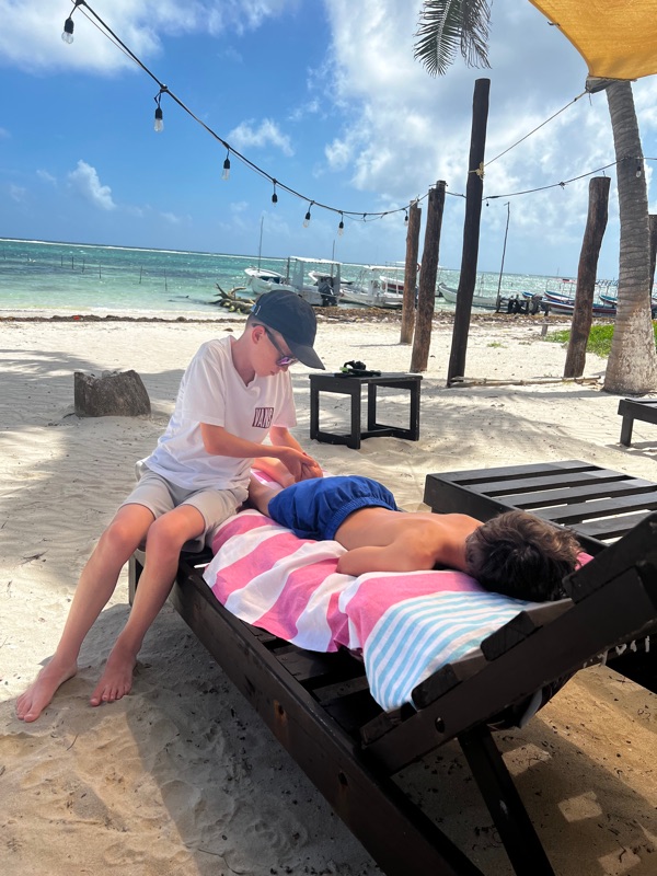 Remote Caribbean beach here we come! Guided only by an AirBnB pin we bundle off the collectivo. Spotting nothing familiar to the booking photos, I leave the gang and run off excited to break through the back street line of shacks and onto the palm lined oasis! Wham! ‘Like’ several thousand American tourists from the cruise ships! Before I could even get my bearings I’m chewing on several lunch menus whilst being ushered to the plethora of makeshift gift stands and massage beds. I think dam! Han is going to hate this….