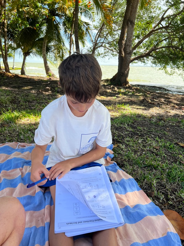 We ditch the fairly decent collectivos in Mexico to board what looks like a relic of an old-style American school bus that must be about 60 years old. It’s ok inside, but definitely very well used! Next stop to cross the Mexican - Belize boarder. After reading about crossing the boarder and how we could pay the exit tax by card, we are bundled into this tiny little room with an armed guard where we find out that it’s cash only, and we don’t have enough cash. So, we thought long and hard, but decided to sell both children to the Mexican cartels, and went through the boarder nice and easily 🤣. Thankfully, thanks to exchanging all of Seb’s Christmas money to dollars at Gatwick airport, we had exactly the right amount of dollars stashed to get through without having to proceed with the child-sell but a few nervous minutes as we counted the dollars out. Next, we get back on the bus to get through immigration…the very kind bus conductor informs us that unless we are quick, the bus will go without us and needless to say, as the only non-Mexicans on the bus, this wasn’t quite as straightforward. Again, a few anxious minutes with the bus-lady huffing and puffing as she watches us sweat to get through. Not the greatest experience for the boys as our first boarder crossing but once again, they handled it all brilliantly.