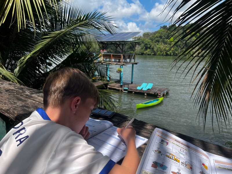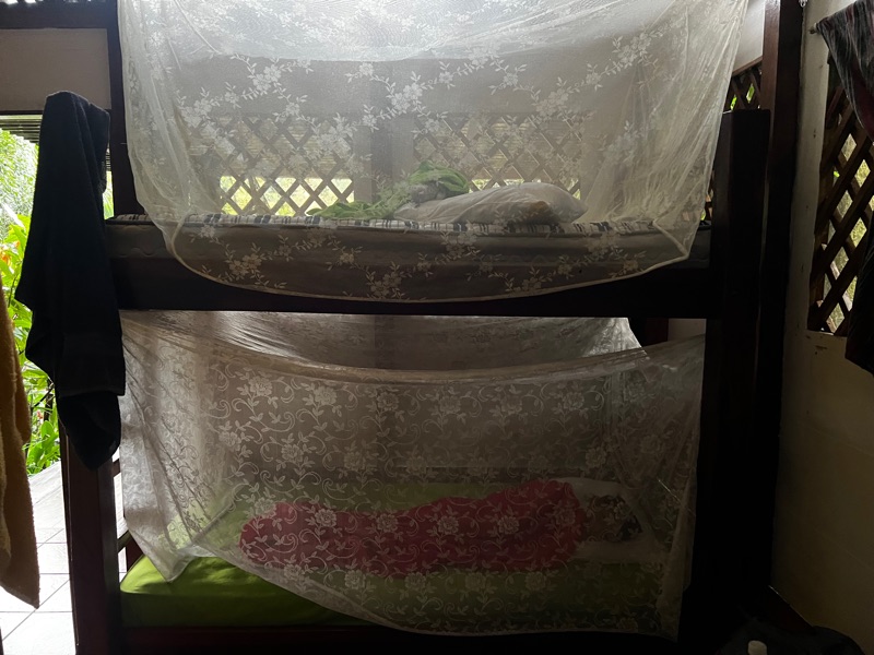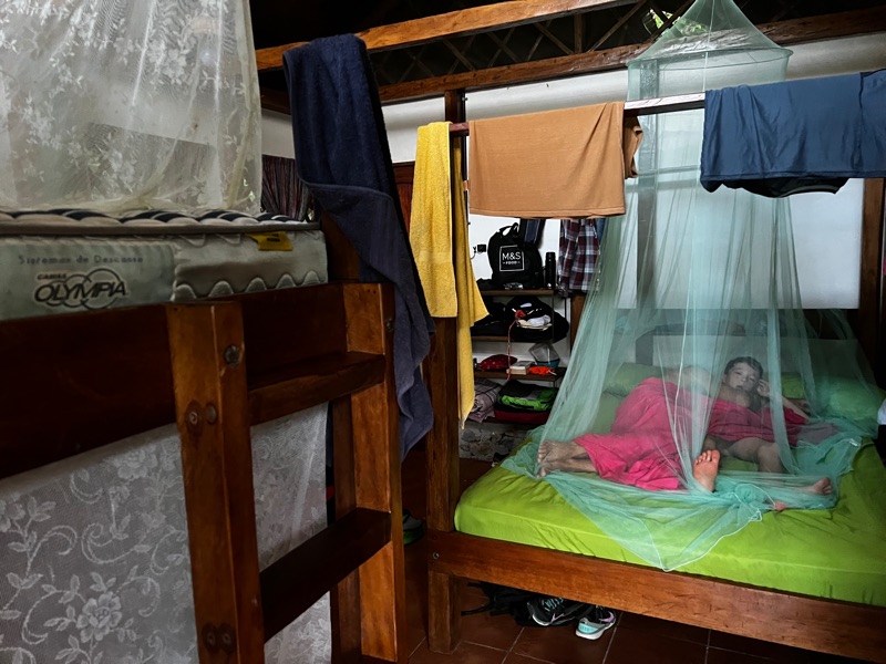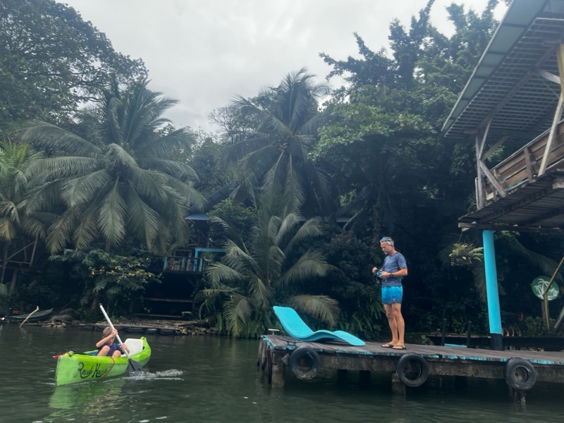 The hotel is a little eco-hostel where all you can do is kayak around and mingle with the other guests (lots of other travellers). You can also listen to the massive screams from Tristan when he finds a giant tarantula in our bathroom!!