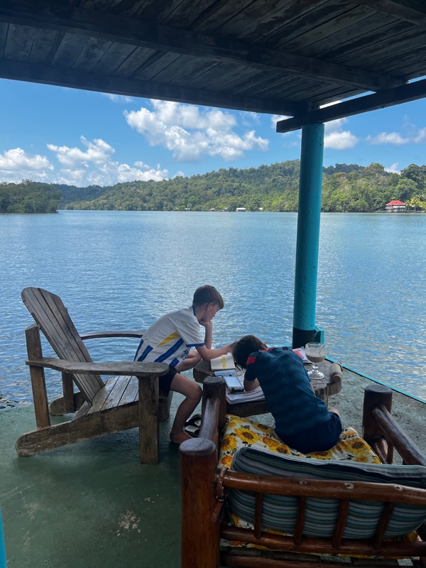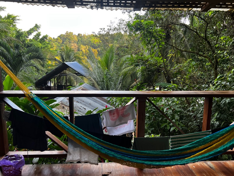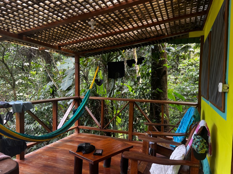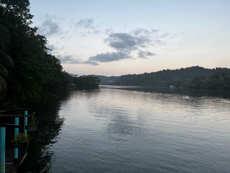 Our next stop has a very different feel, a little wooden hut by the riverbank of the Rio Dulce. It’s a very welcome retreat with jungle one side, and river the other.