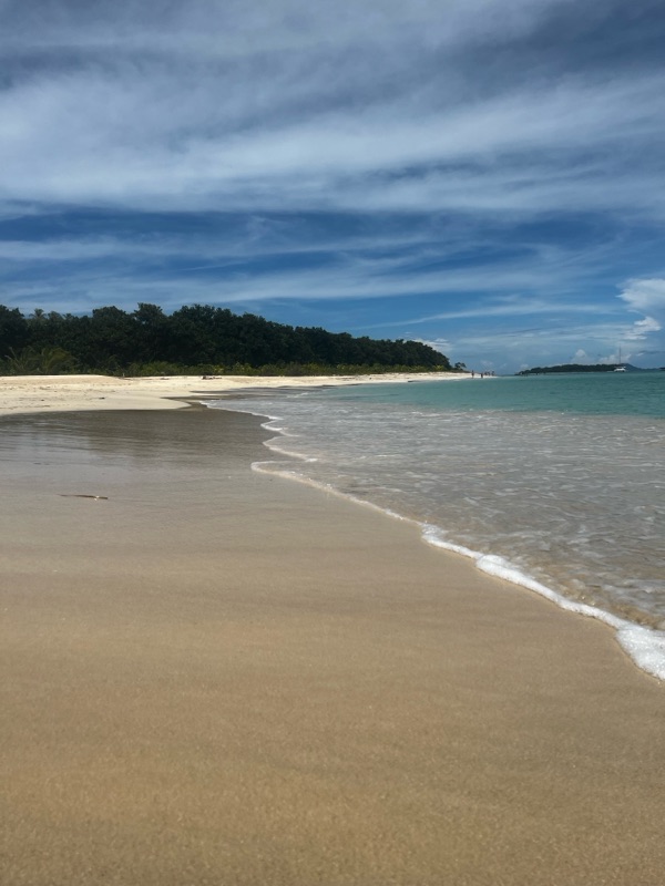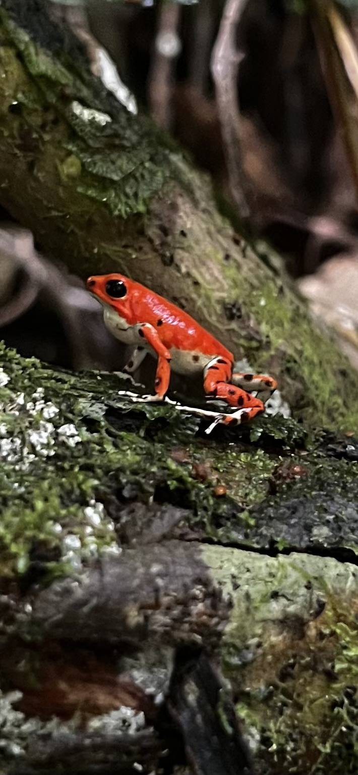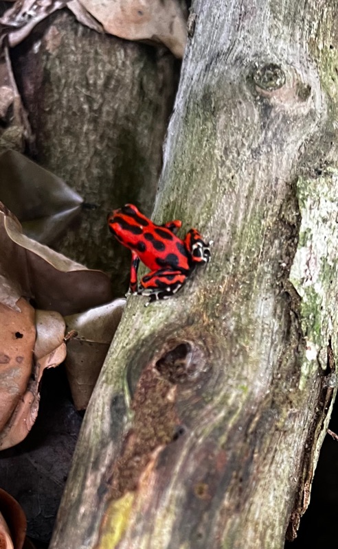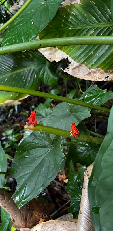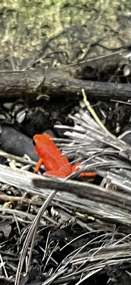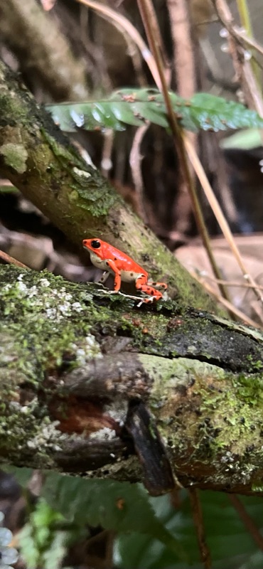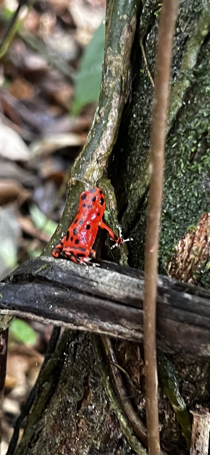 Our ‘guide’ also had Isla Bastimentos on the itinerary and in particular an area of the island called Red Frog Beach famed for a type of red and black poison dart frog that was in abundance (once again, he can tell you every incy-bit about them!). So off we went on a boat trip to the island to find the frogs. To avoid the park entrance fee and more expensive taxi boat, we decided to take the 45 minute walk along the beach to get there. Well, when the taxi boat guy dropped us off, he must have been chuckling to himself all the way back as the 45 minute walk was more like 2 hours in what seemed like 99% humidity, with no clear path marked, just dense jungle, thick with mud (we were all wearing flip-flops), and animal homes that resembled Jaguar properties! I honestly thought we were going to be reported missing and we were going to get eaten by snakes or large cats π³, or get-got by the darn frogs that we were hunting for! Thankfully, we found the silly frogs, and the elusive beach, and we washed our muddy feet, legs and arms in the water, and had a wonderful last play in the gigantic waves in what may be our final dip in the Caribbean Sea on this trip π. Perhaps spending an extra $20 may have made our day slightly easier….but far less memorable!
