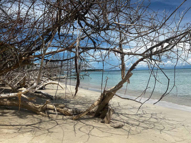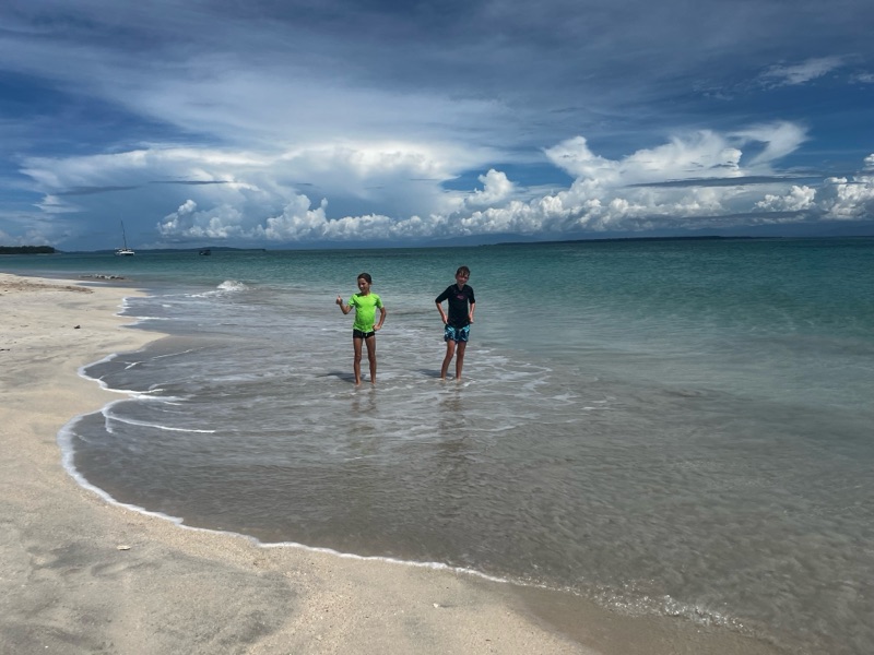 Although this area wasn’t known for its snorkelling, we thought we’d give it a go and OMG, this was a great decision. Beautiful, beautiful coral, marine plants, anemone, starfish, tropical fish, two types of moray eel, rays, etc… and Tris can name every last detail about each one and got Seb super excited too. What we saw was incredible and I must say a great relief to see such healthy coral after our experience in Belize.