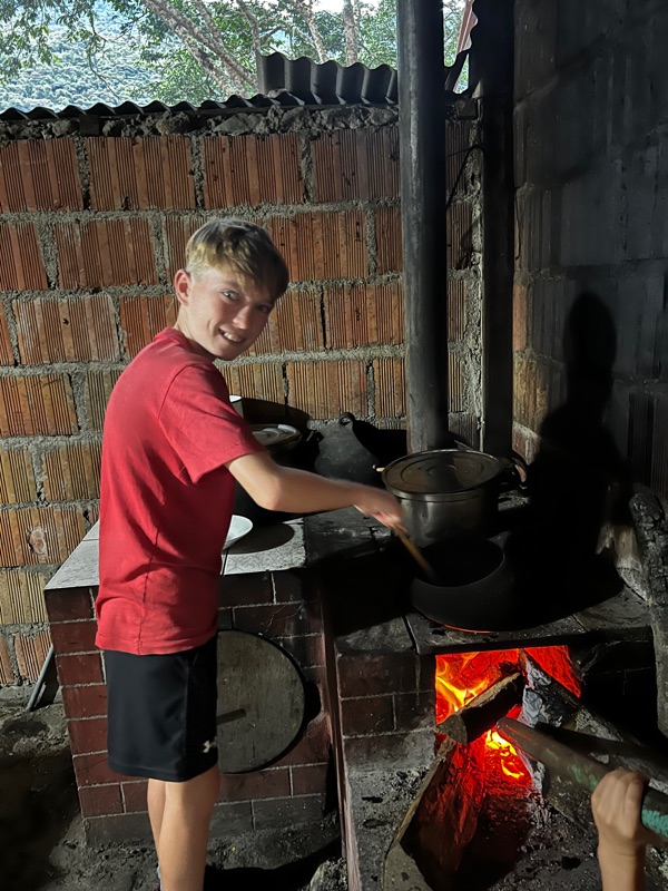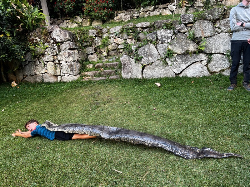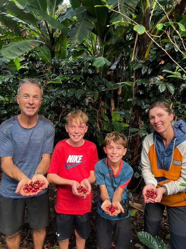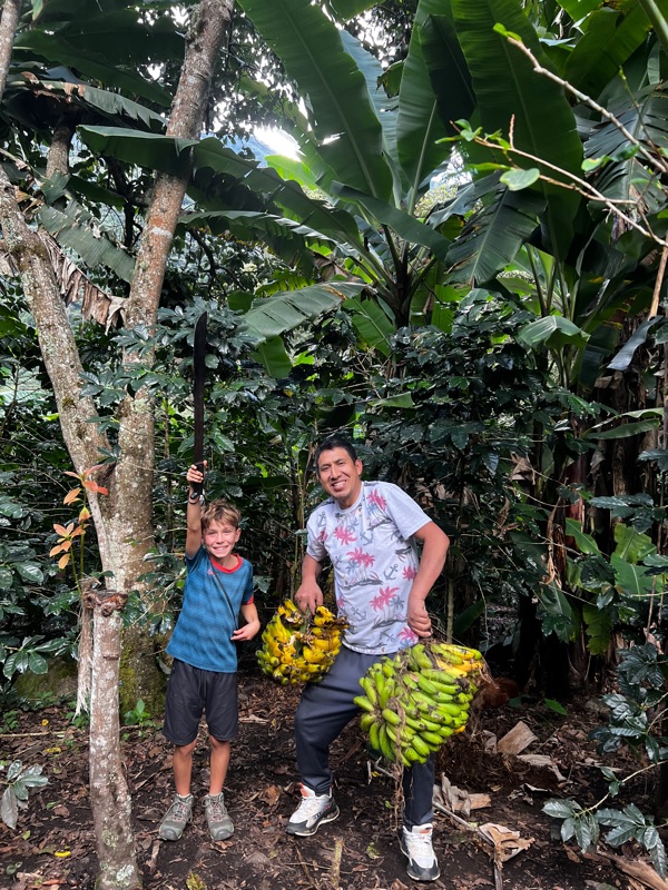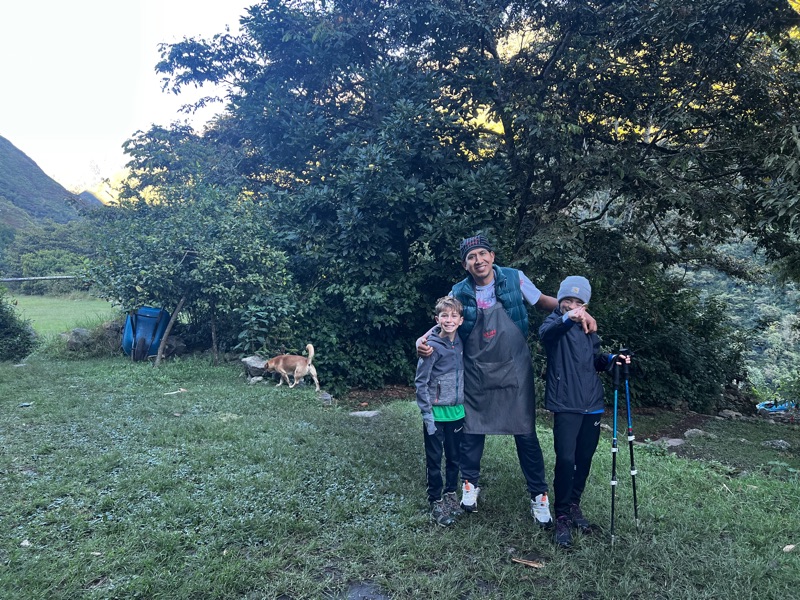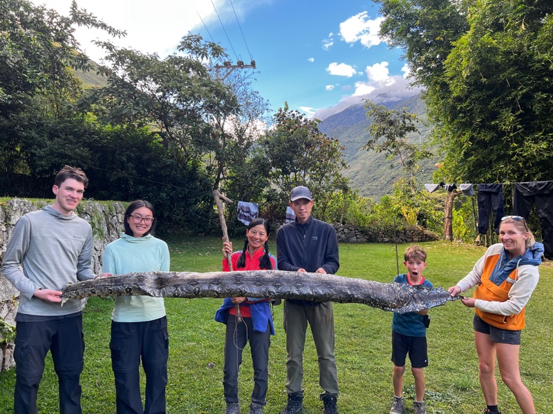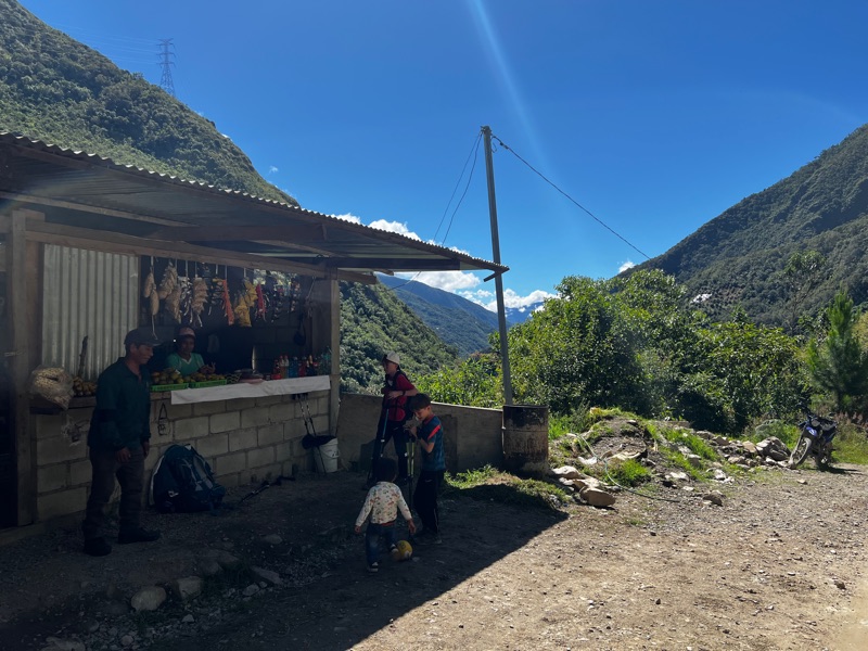 After many hours of walking, we arrive at our lovely little coffee plantation accommodation where we are warmly greeted by a lovely Peruvian family. They kindly give us a tour of their property, including some tips re the snake population around these parts! Seb also manages to find a football pitch, what more could we all want and what a contrast to yesterday. We all feel very well looked after by the family and enjoy great  coffee, food, games, comfortable beds, hot water and even a towel. What a day, phew!