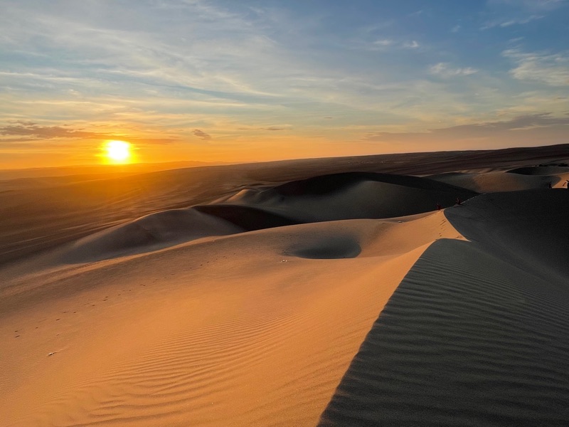 The final descent from the Andes in the emerging daylight was once again incredible, vast, very baron and lunar-like until we arrived at Ica, where the harsh rocky mountainous suddenly gave way to enormous sand-dunes appearing out of nowhere. Huacachina desert will be our playground for the next few days.