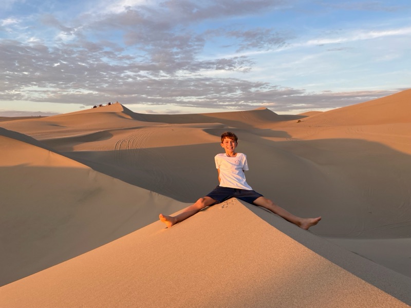 A few hours play with the football high in the dunes in the afternoon was exhausting. The gambit being the closest kick to the dune peak won, too close ran the risk of the ball rolling down the other side where the kicker would need to retrieve it, no small challenge at over 100m vertical and the way back up was of course a case of 2 steps forward 1 step back - great fun. We sat and watched the dune buggies race around us the noise of their V8 engines and passengers’ screams filling the air. We’ll have some of that! We booked up.