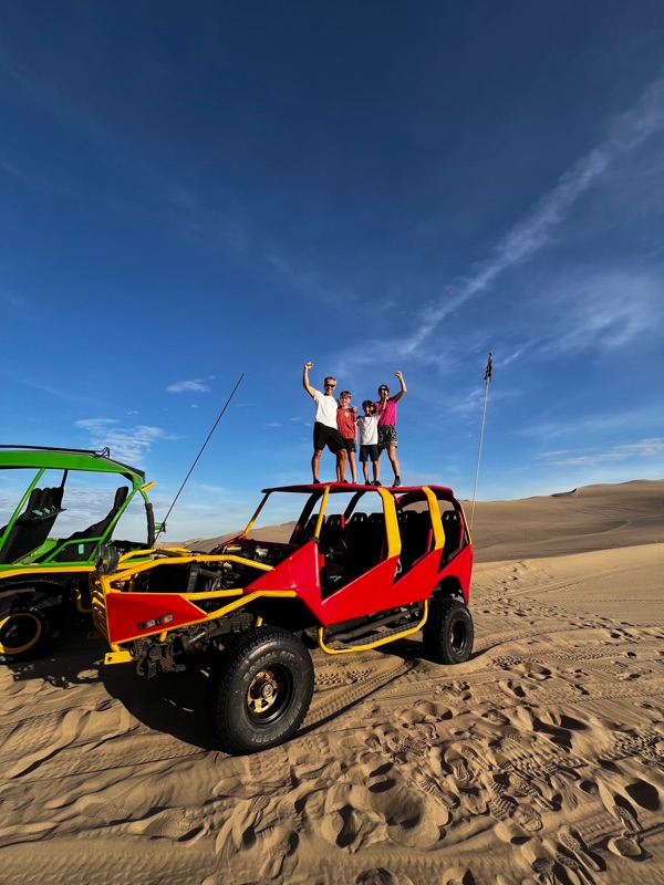 3pm the next day we headed out for an hour of thrills. After a brief drive out in the quiet buggy and a mild beginner’s slope for sand boarding we arrived back 1/2 hr later. Definitely “no feliz“!!!! (a well exercised expression of dissatisfaction during our trip). After a brief tΓͺte-Γ -tΓͺte we demanded 1/2 our money back with threat of a terrible Google review. To our surprise we got a total refund - result! Off we ran to scope a buggy ready to go. We quickly climbed aboard an upgraded model with the de-rigueur V8. This was more like it but now hoping that at least some form of health and safety has been applied after recent year’s accidents as the driver made us feel as if we were on a rollercoaster! Rising over blind dune crests, careering down the other side and back up to perform 1/2 pipe like turns - great fun and a real adrenaline fix!