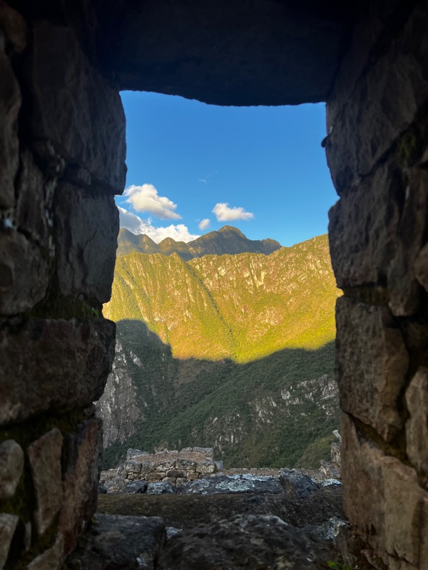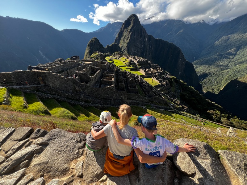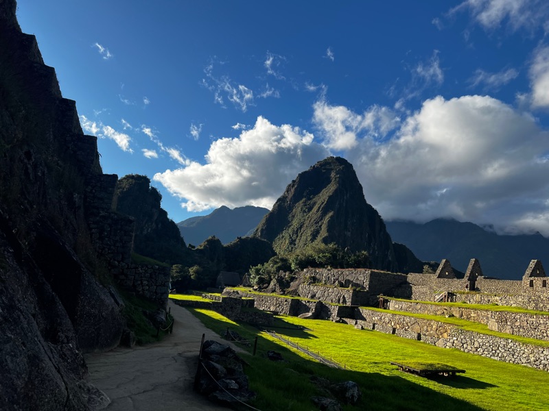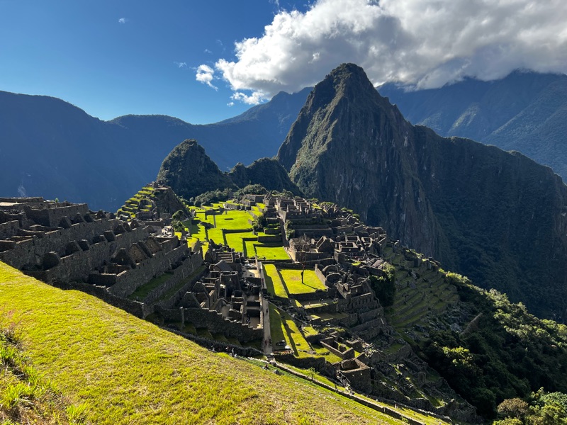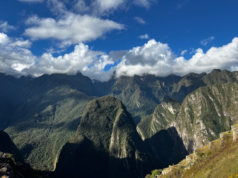 The journey to Machu Picchu was truly spectacular (with the other sensible tourists on the bus) up a hair-pinned, mountain pass from an altitude of 2030 to 2430 metres. Although the altitude was not as high as the past few days, the truly incredible position of Machu Picchu was astonishing. The enormity and remoteness was overwhelming, perched on top of an insanely high mountain with steep jungly slopes all around, begging the question how on earth was this magnificent citadel built…. (👽). We only saw a fraction of the enormous site but we learnt about the ingenious construction, including how the rocks are carved to fit precisely into the adjacent rocks without the use of mortar, enabling them to withstand the harsh weathers and earthquakes.